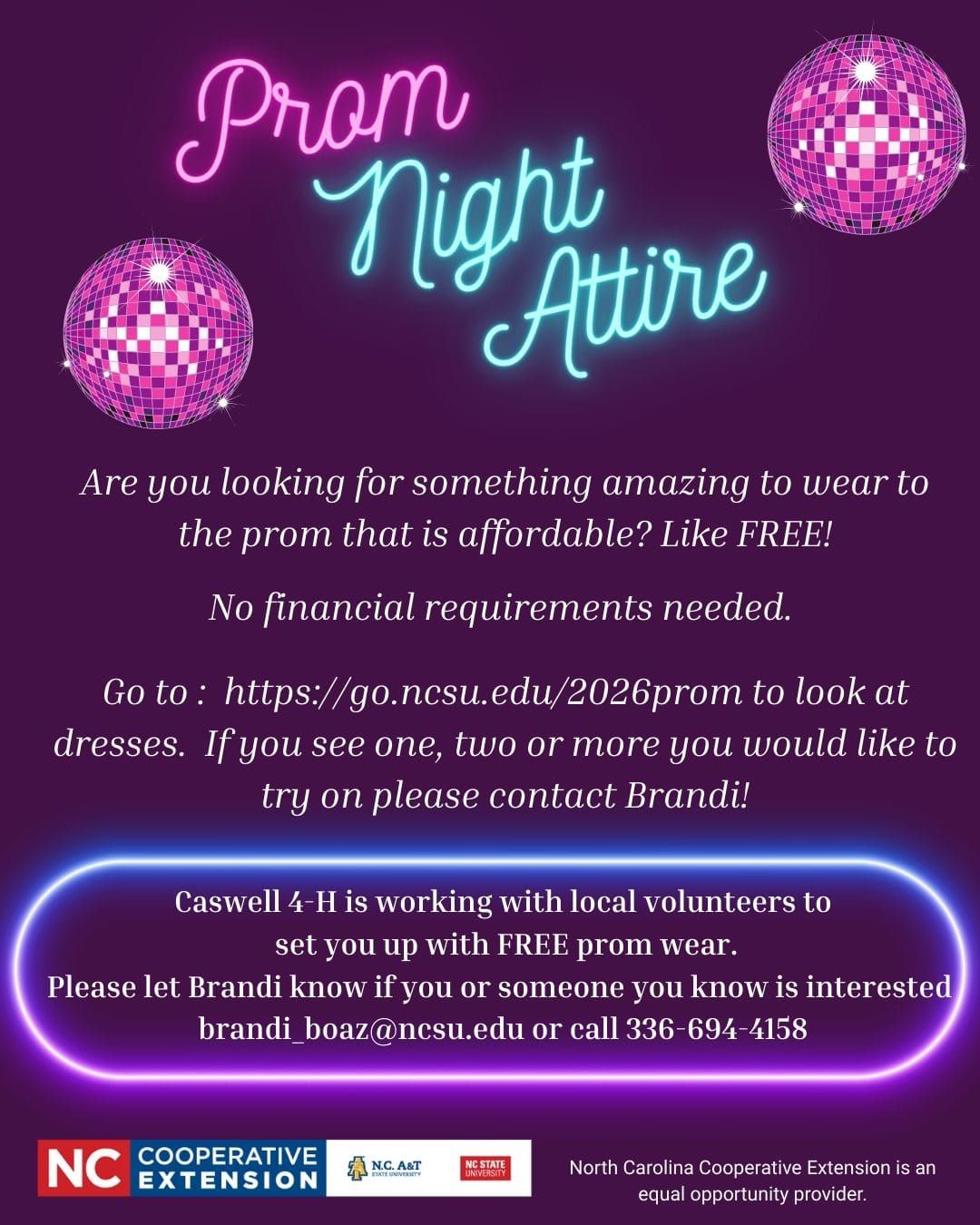 Caswell 4-H knows formal dresses can be expensive and invites Caswell families to save money by "shopping" their collection of FREE prom dresses.