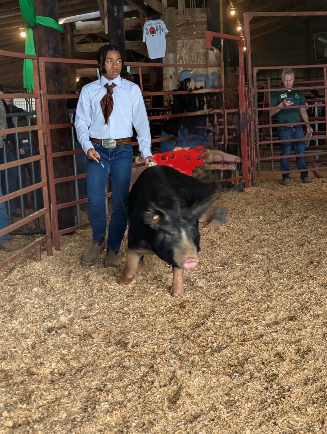 Caswell started out strong on day one of the show with Caleb Bolton showing his hog, Fred! The duo won first place in his market class and third in showmanship. For his first time showing we were all super excited, especially Fred because he got extra marshmallows!