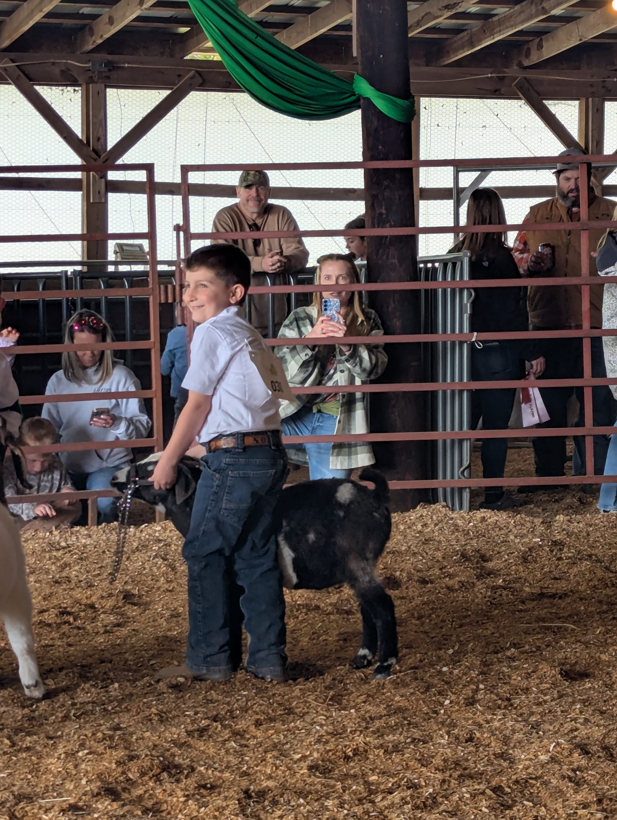 As we switched to goats we had another new showman participating. Nolan Popp and his goat Gus had an amazing time learning new skills and bringing home two Cloverbud ribbons!